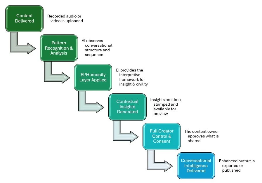 Providing insights that highlight themes, moments of alignment or tension, and emotional dynamics—offering a shared reference point for learning and discussion.